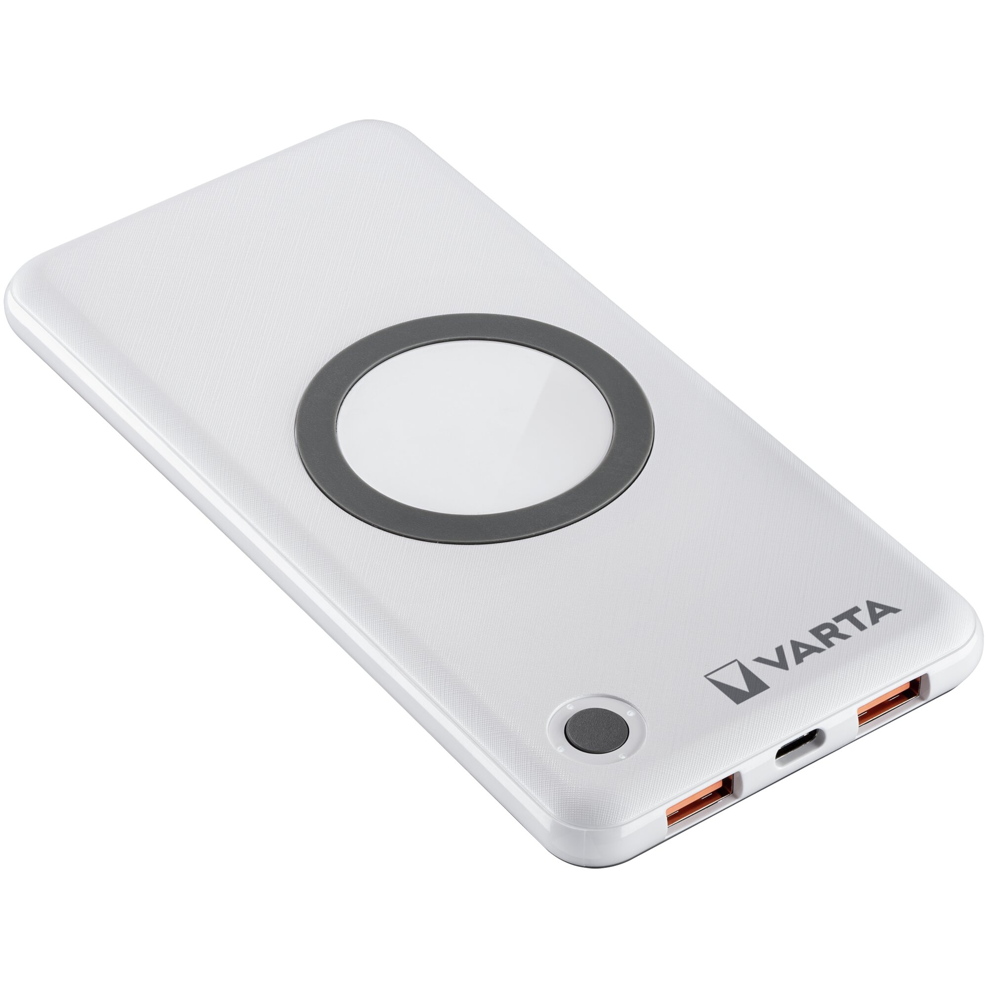 Praktisches 2-in-1-Produkt: Wireless Charger und Powerbank in einem. Die Power Bank lädt mit bis zu 18 W (USB Typ C). Kabelloses Laden mit bis zu 10 W. Pass-Through-Ladefunktion: Laden Sie die Power Bank und das Smartphone zur gleichen Zeit. 4 weiße LEDs als Ladestandanzeige (blaue LEDs als Anzeige für Schnellladen und kabelloses Laden). USB Type C PD Ausgang für schnelles und intelligentes Laden (5V/3A; 9V/2A; 12V/1,5A). Mit neuester "VARTA Advanced Safety Technology". Garantierte und bewährte VARTA Qualität.